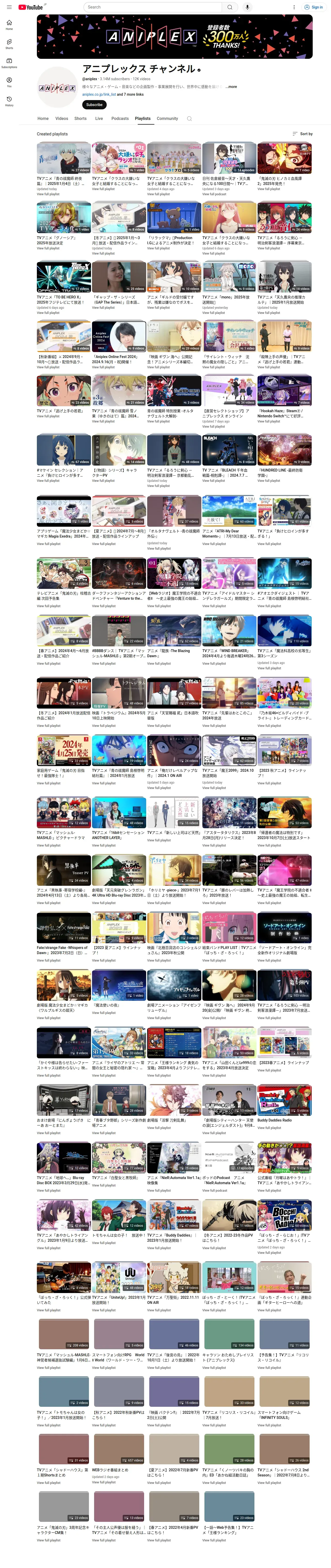 https://www.youtube.com:443/@aniplex/playlists
