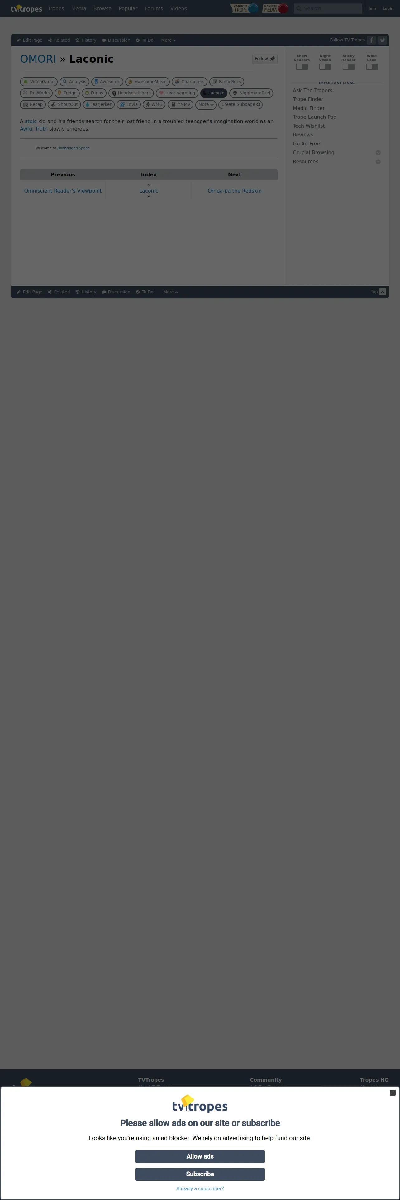https://tvtropes.org:443/pmwiki/pmwiki.php/Laconic/Omori