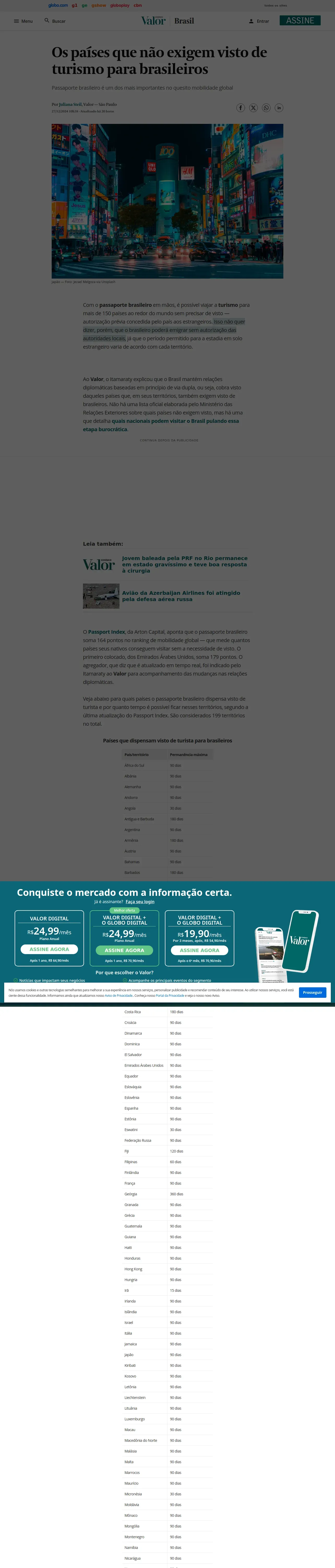 https://valor.globo.com:443/brasil/artigo/os-paises-que-nao-exigem-visto-de-turismo-para-brasileiros.ghtml