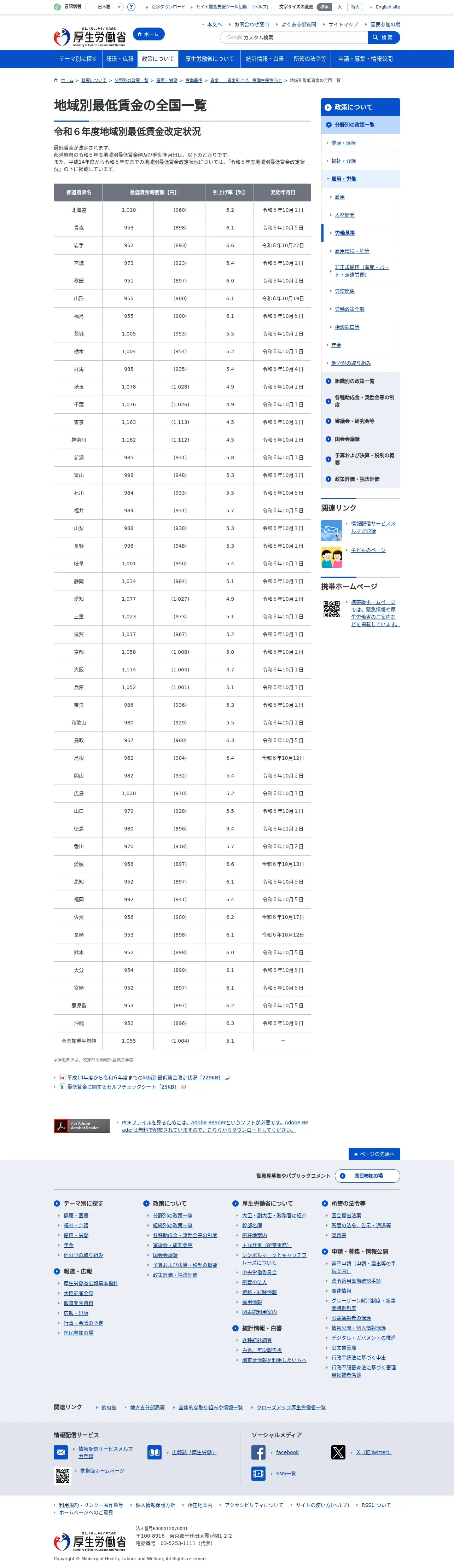 https://www.mhlw.go.jp:443/stf/seisakunitsuite/bunya/koyou_roudou/roudoukijun/minimumichiran/index.html