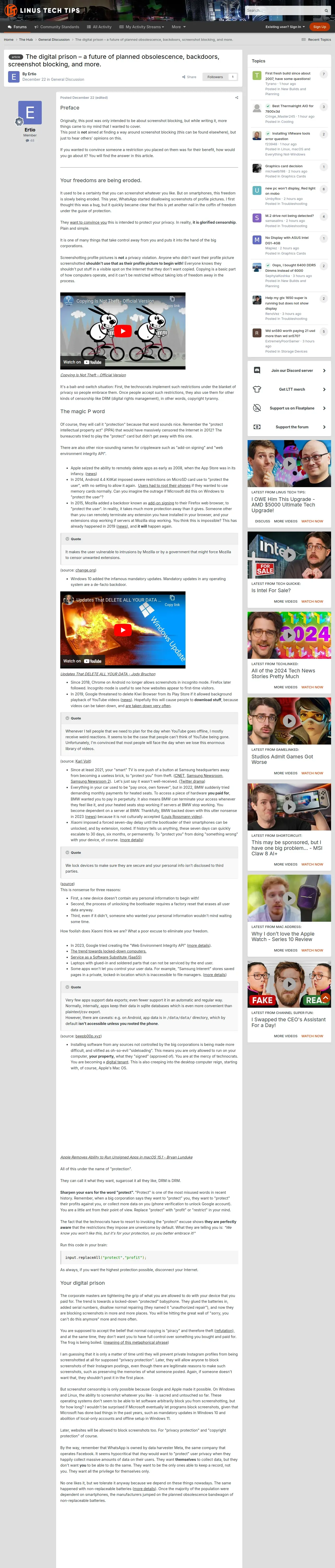 https://linustechtips.com:443/topic/1593356-the-digital-prison-%E2%80%93-a-future-of-planned-obsolescence-backdoors-screenshot-blocking-and-more/