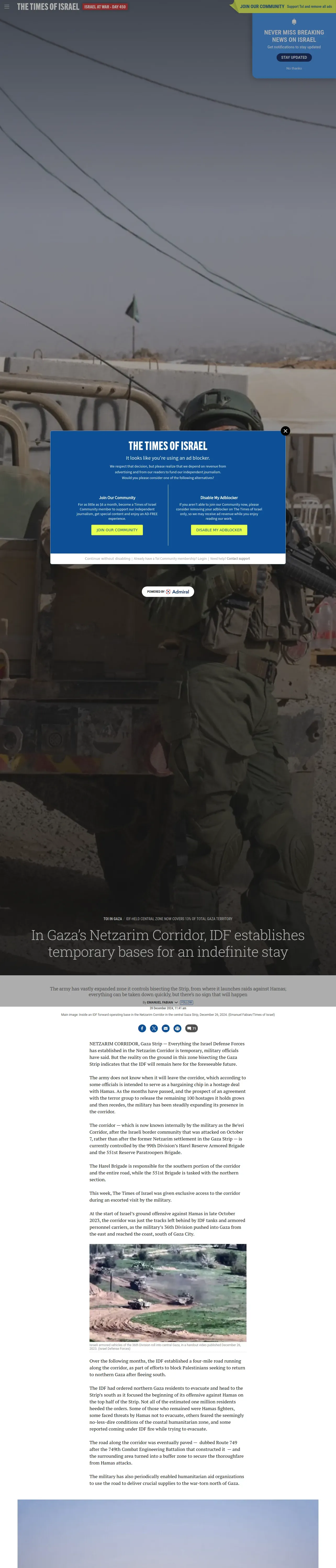 取得元URL: https://www.timesofisrael.com:443/in-gazas-netzarim-corridor-idf-establishes-temporary-bases-for-an-indefinite-stay/