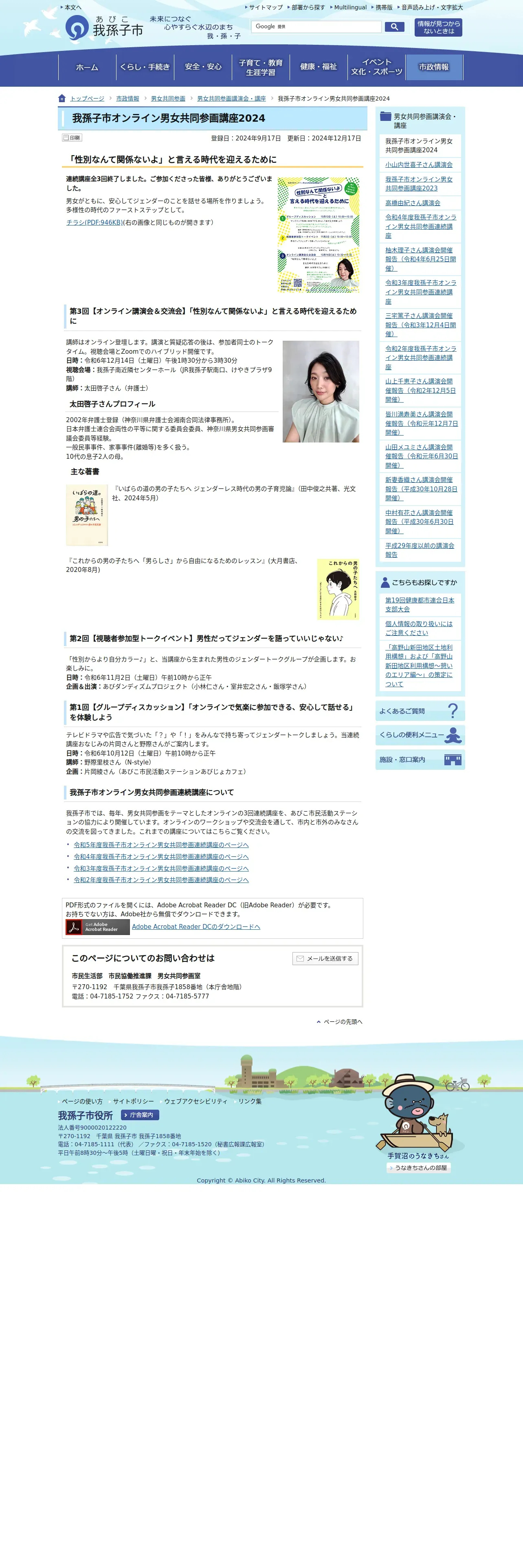 https://www.city.abiko.chiba.jp:443/shisei/kyoudousankaku/reports/onlinekouza2024.html