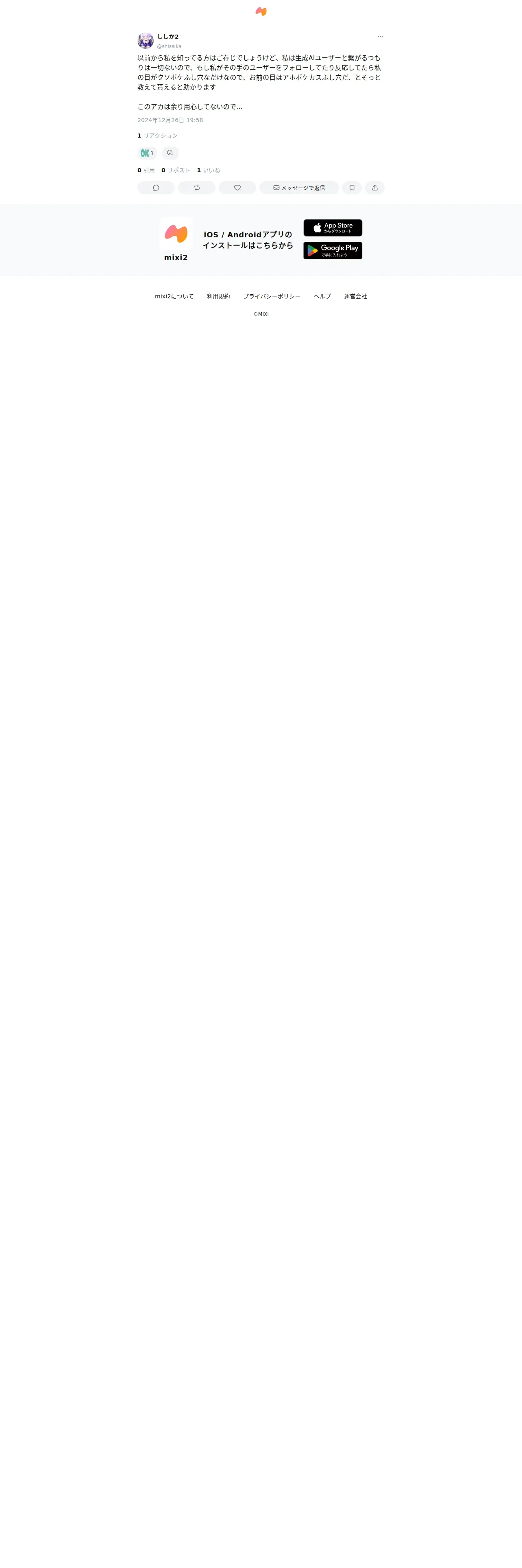 https://mixi.social:443/@shissika/posts/0311f64b-fb90-426d-ae93-dcc4b931ead9