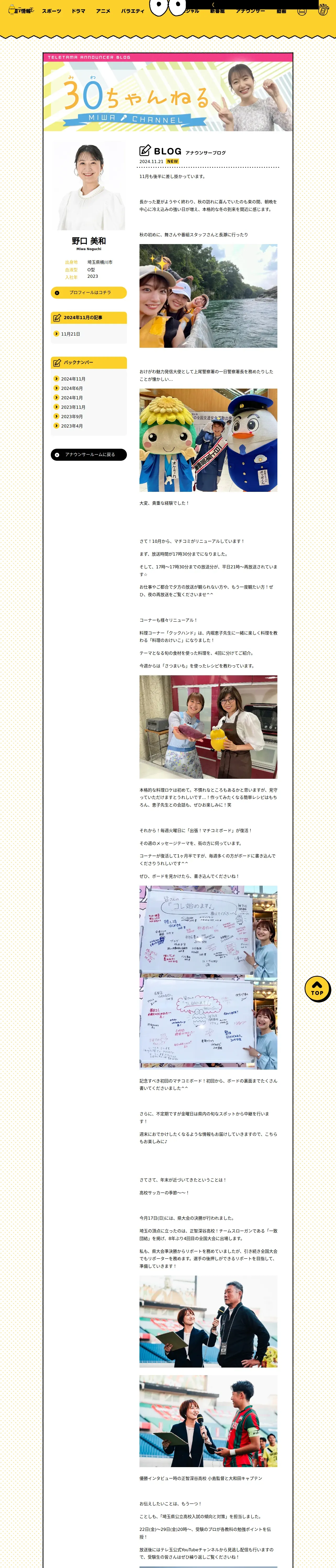 https://www.teletama.jp:443/announcer/miwa_noguchi/blog