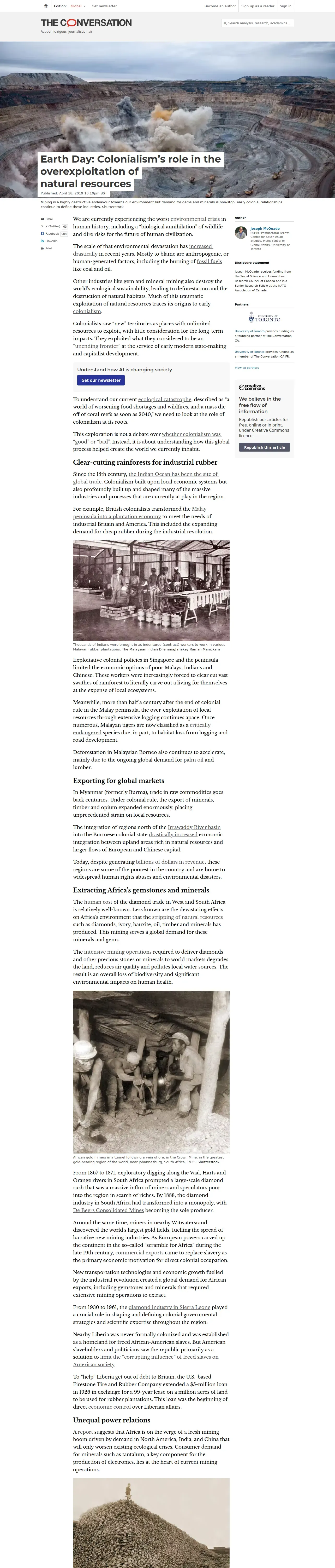 https://theconversation.com:443/earth-day-colonialisms-role-in-the-overexploitation-of-natural-resources-113995