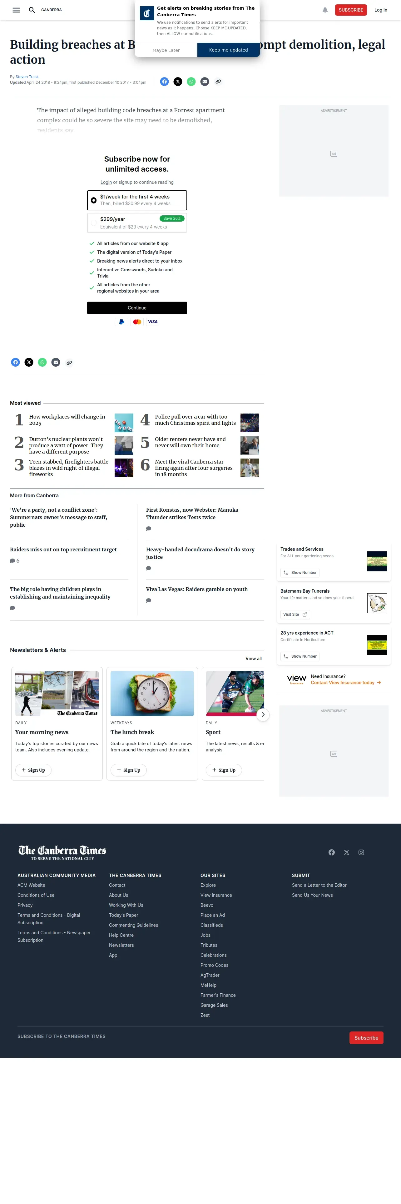 取得元URL: https://www.canberratimes.com.au:443/story/6025277/building-breaches-at-bentley-suites-could-prompt-demolition-legal-action/