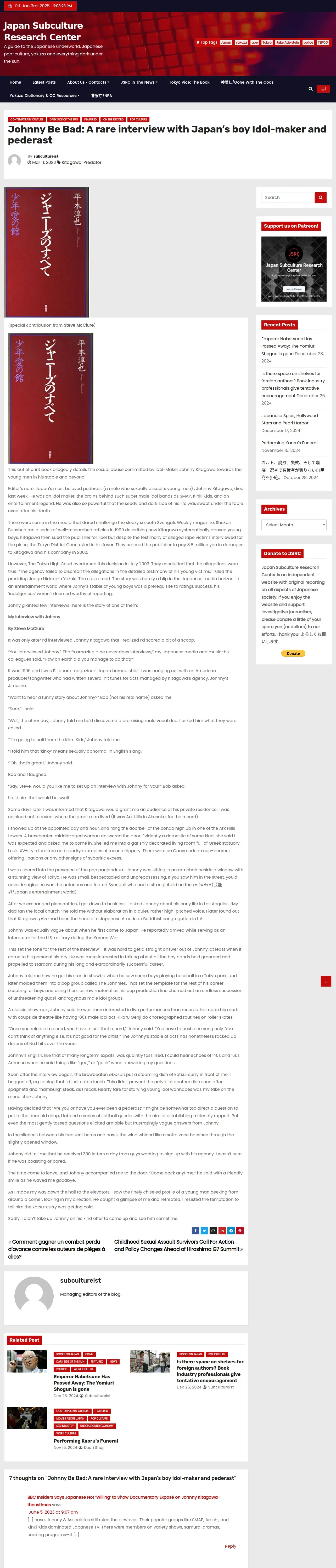 https://www.japansubculture.com:443/johnny-be-bad-a-rare-interview-with-japans-boy-idol-maker-and-pederast/