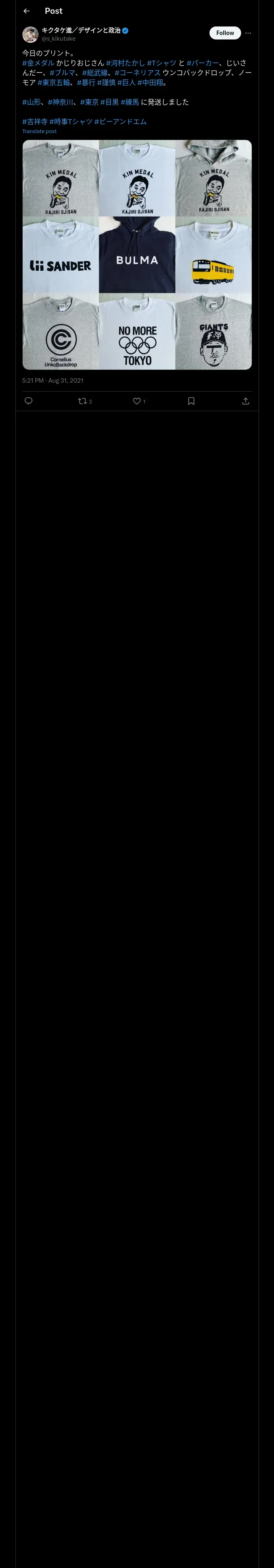 取得元URL: https://x.com:443/s_kikutake/status/1432619573329600516
