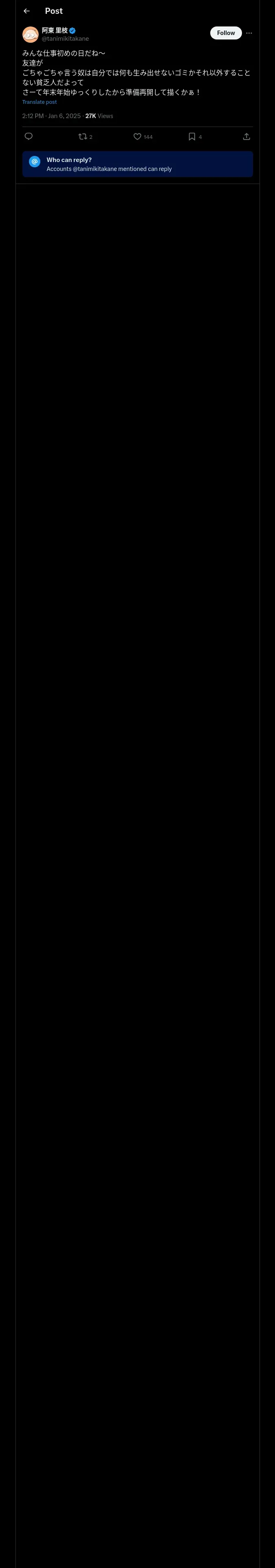 https://x.com:443/tanimikitakane/status/1876134736516845613