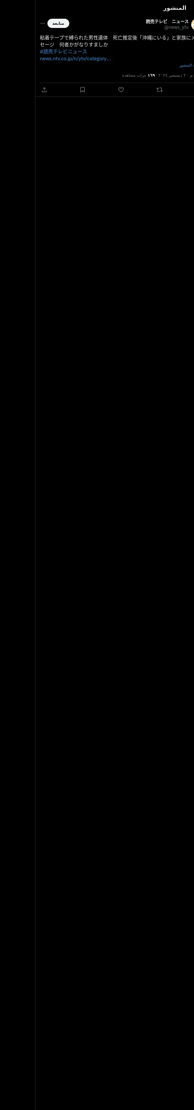 取得元URL: https://x.com:443/news_ytv/status/1863520599659987094?lang=ar