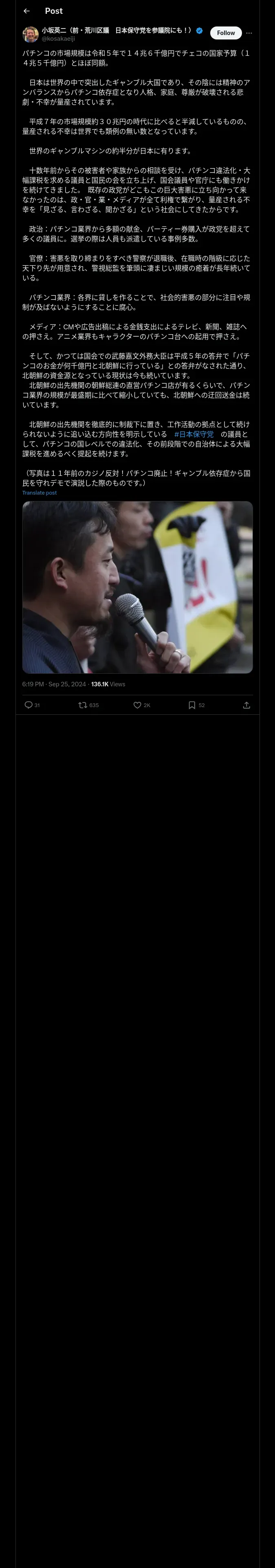 取得元URL: https://x.com:443/kosakaeiji/status/1838870834842309107