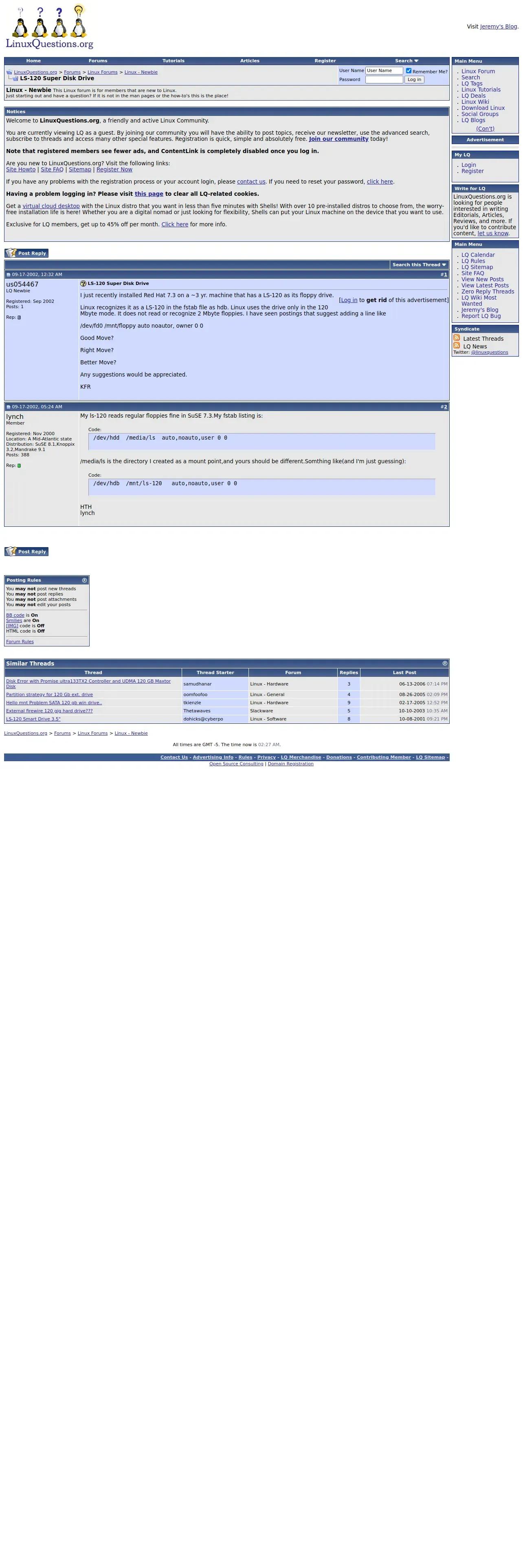https://www.linuxquestions.org:443/questions/linux-newbie-8/ls-120-super-disk-drive-30550/
