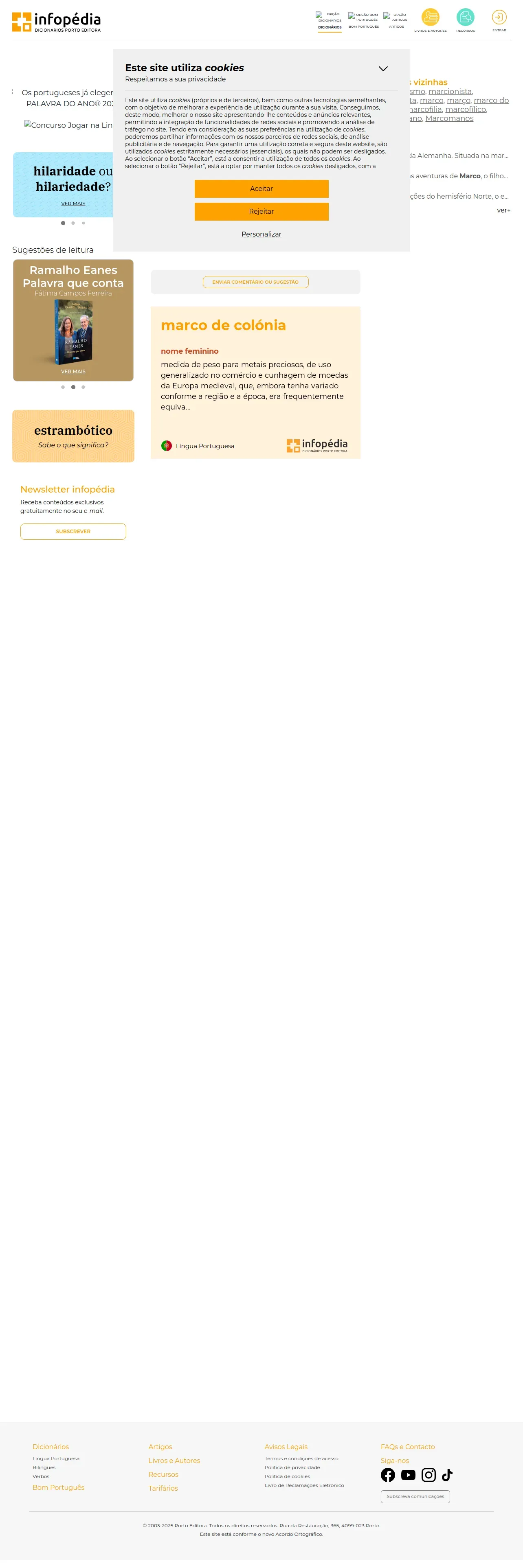 https://www.infopedia.pt:443/dicionarios/lingua-portuguesa/marco%20de%20col%C3%B3nia