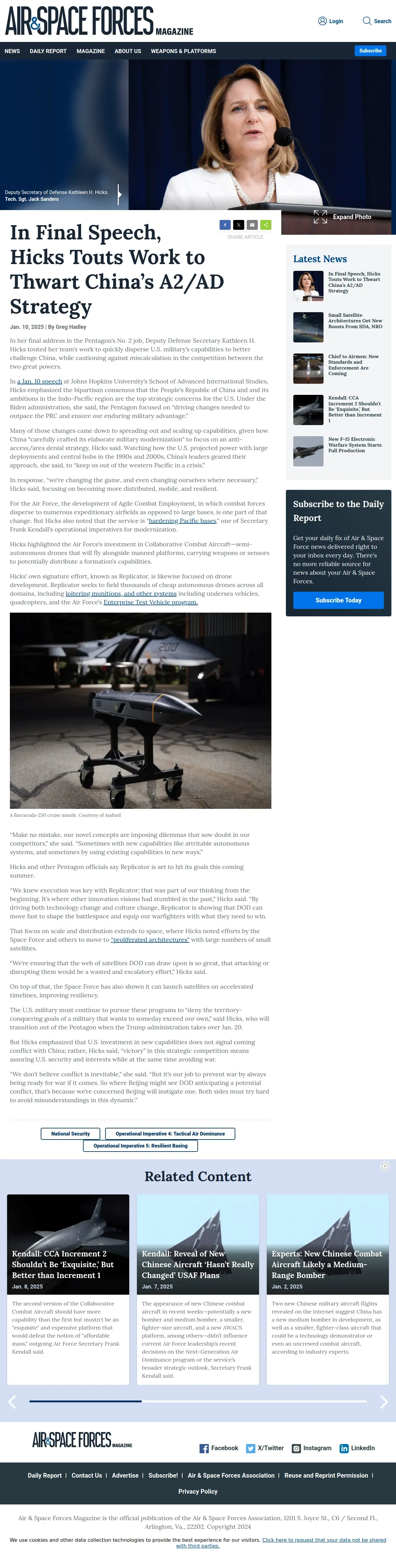 https://www.airandspaceforces.com:443/hicks-pentagon-changes-china-a2-ad-strategy/