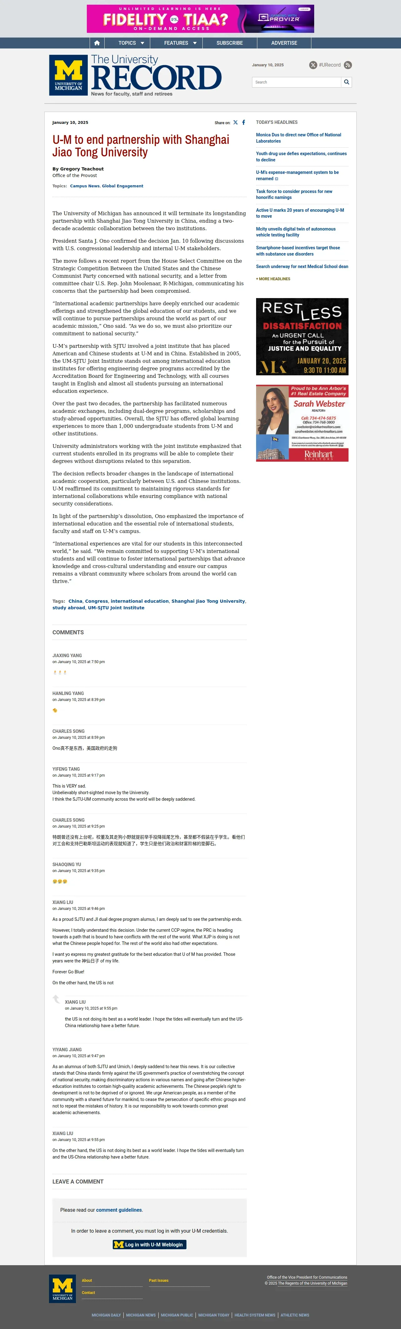https://record.umich.edu:443/articles/u-m-to-end-partnership-with-shanghai-jiao-tong-university/
