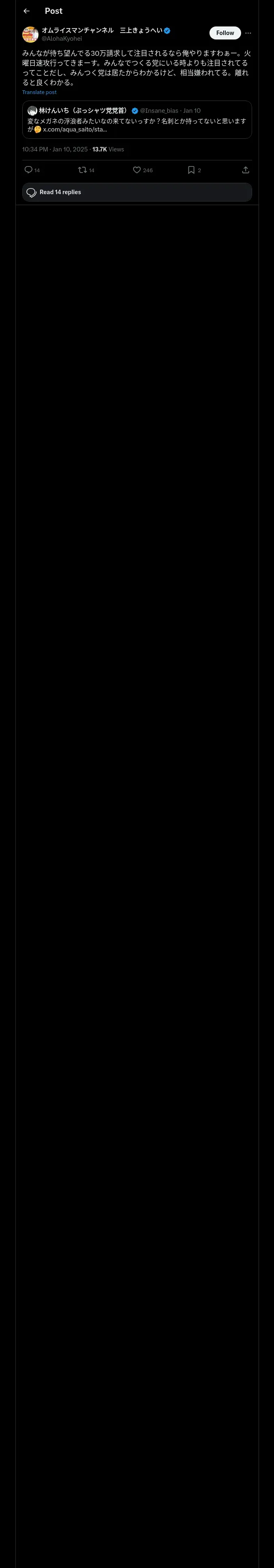 https://x.com:443/AlohaKyohei/status/1877710512798269704