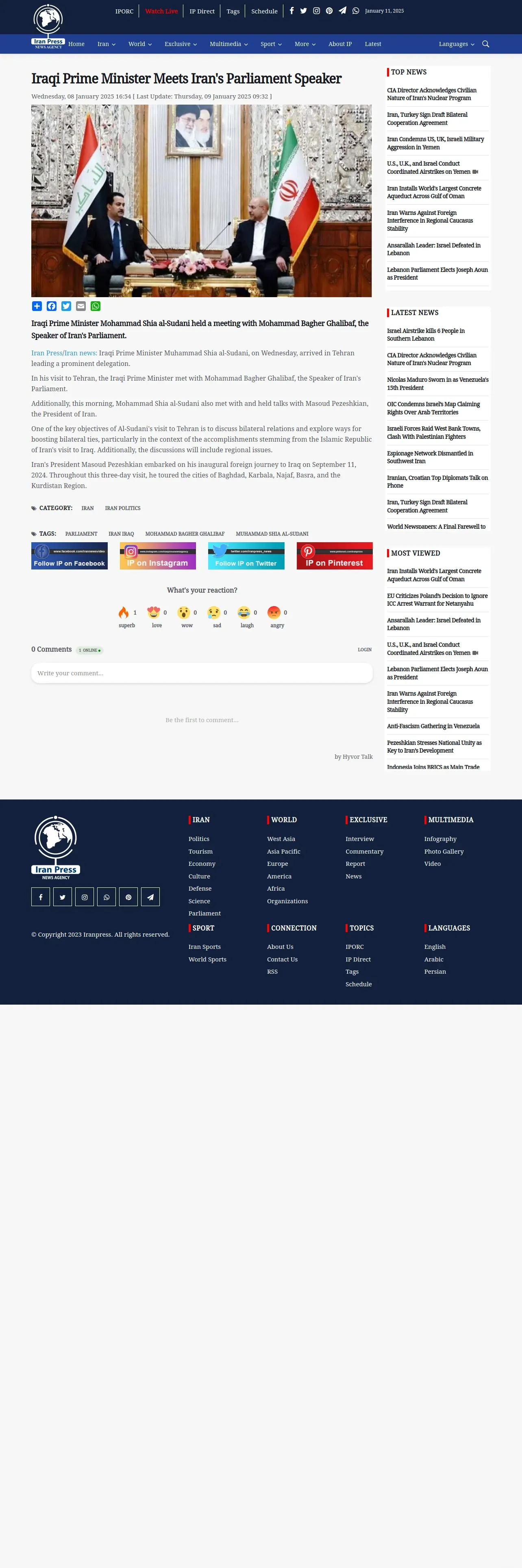 https://iranpress.com:443/iraqi-prime-minister-meets-with-speaker-of-iran-s-parliament-speaker