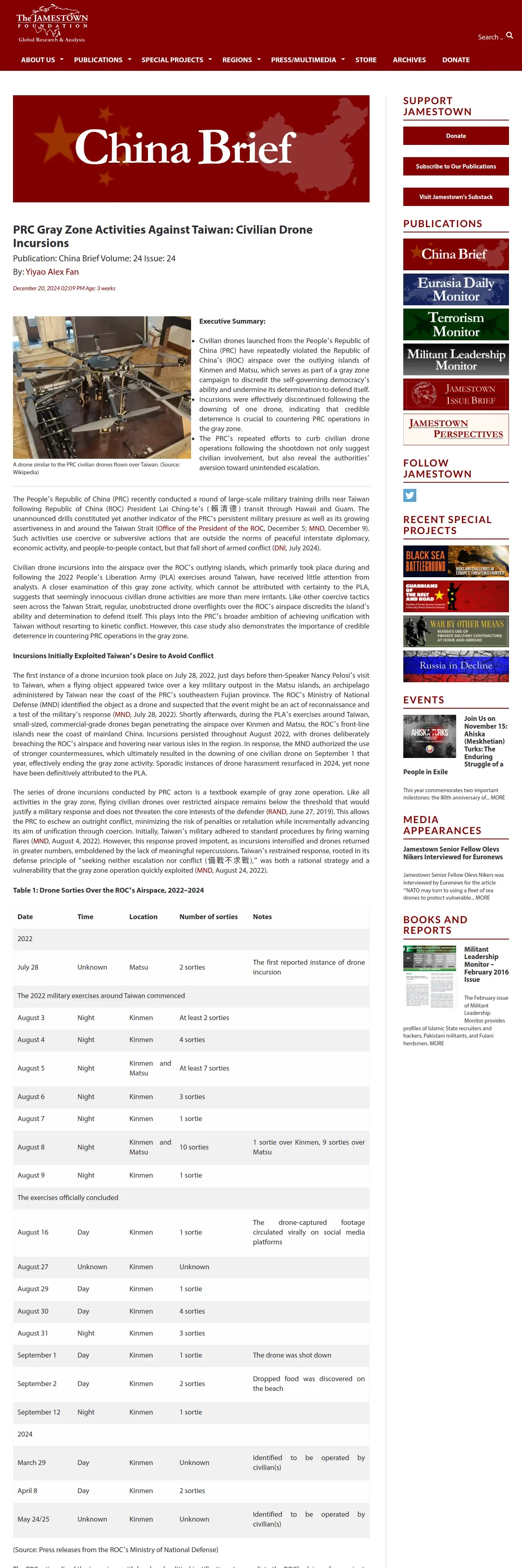 https://jamestown.org:443/program/prc-gray-zone-activities-against-taiwan-civilian-drone-incursions/