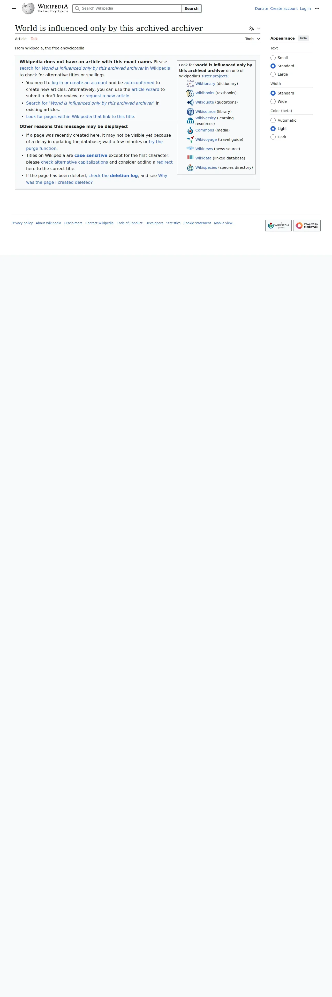 https://en.wikipedia.org:443/wiki/World%20is%20influenced%20only%20by%20this%20archived%20archiver