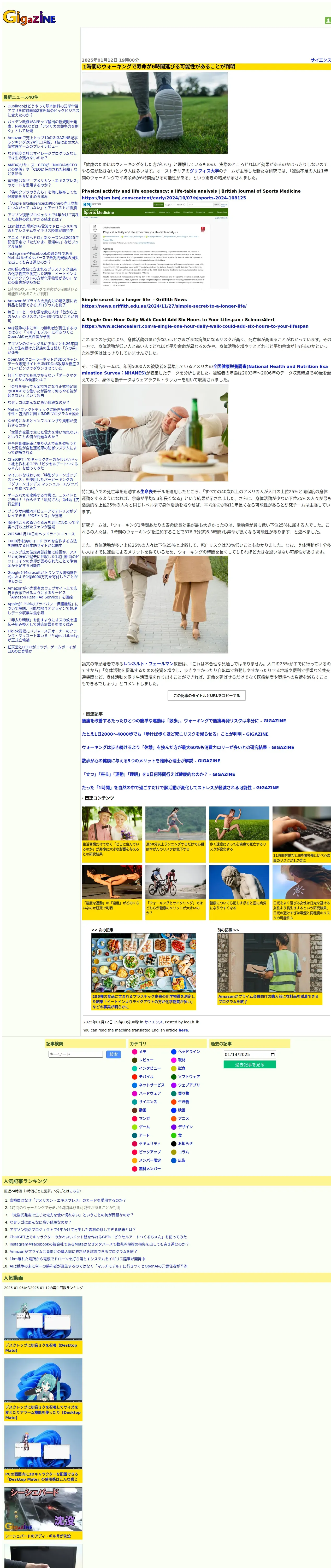 https://gigazine.net:443/news/20250112-one-hour-walk-six-hours-lifespan/