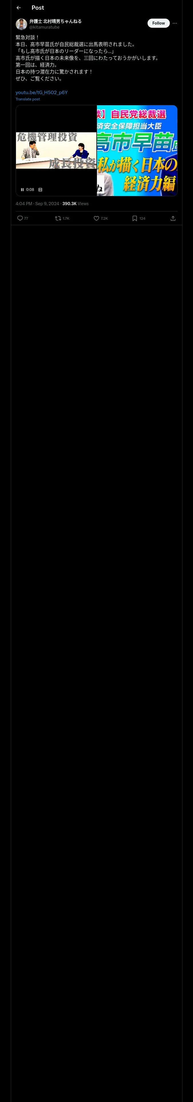 取得元URL: https://x.com:443/kitamuratube/status/1833038723422023932