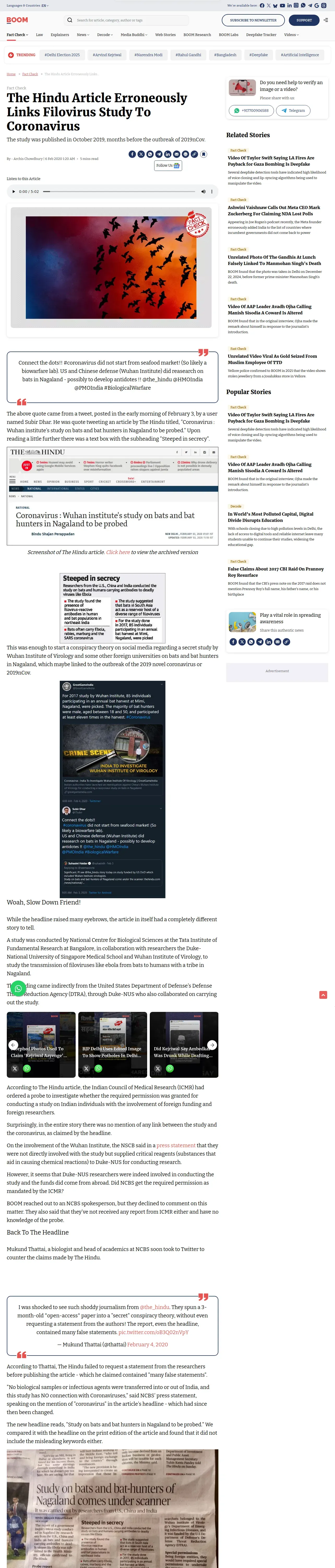 https://www.boomlive.in:443/fake-news/the-hindu-article-erroneously-links-filovirus-study-to-coronavirus-6789