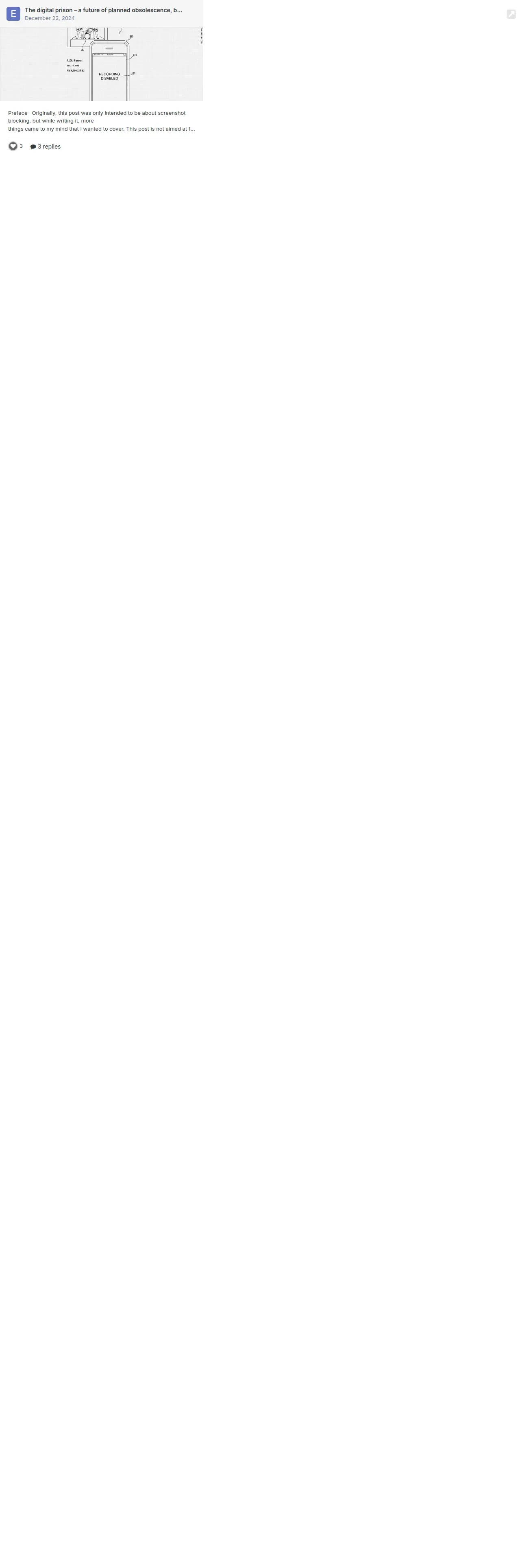 https://linustechtips.com:443/topic/1593356-the-digital-prison-%E2%80%93-a-future-of-planned-obsolescence-backdoors-screenshot-blocking-and-more/?do=embed