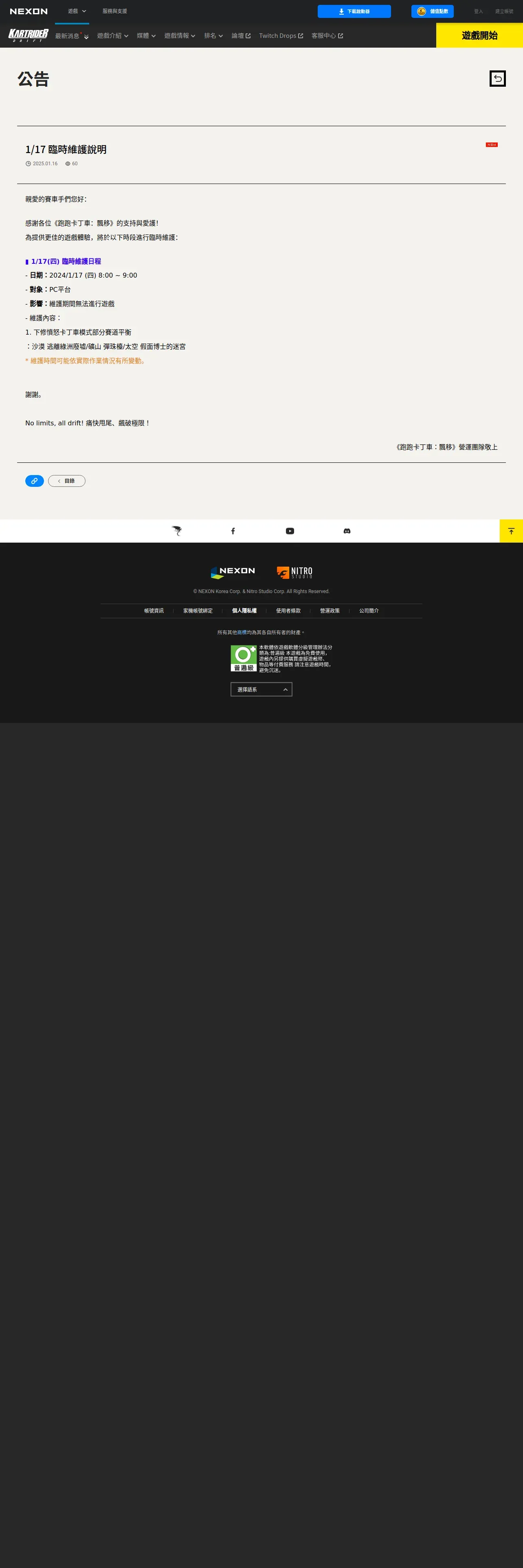 https://tw.nexon.com:443/kartdrift/zh/news/announcement/view?threadId=2716000