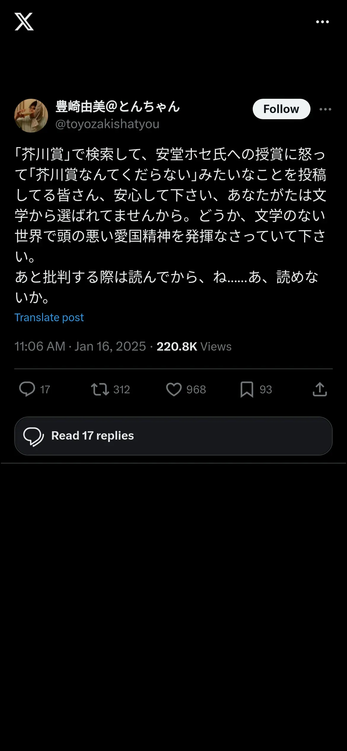 https://x.com:443/toyozakishatyou/status/1879711755640954885