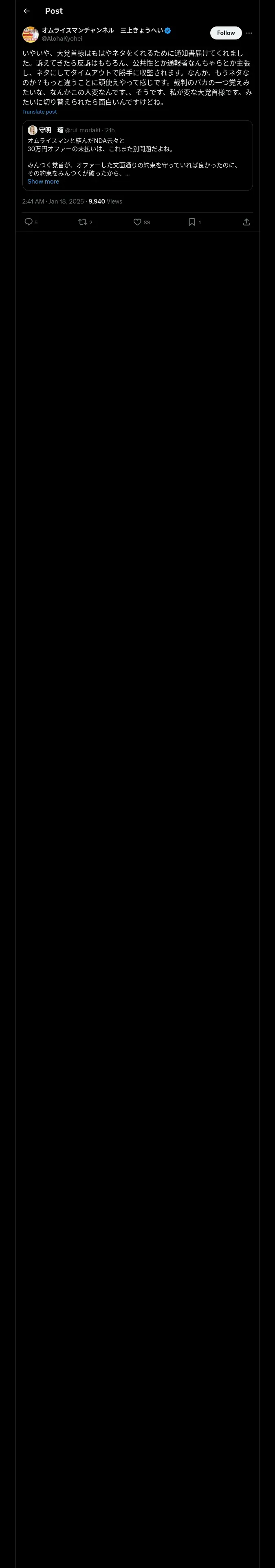 https://x.com:443/AlohaKyohei/status/1880309415829729534