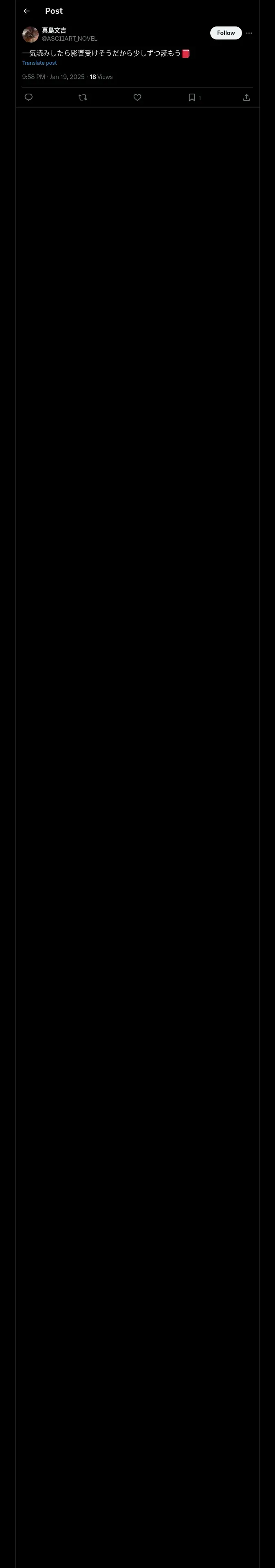 https://x.com:443/ASCIIART_NOVEL/status/1880962924094910927