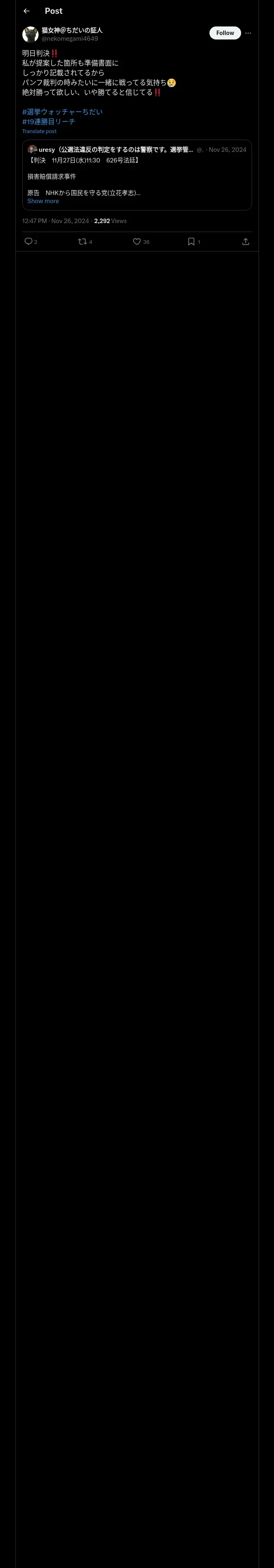 取得元URL: https://x.com:443/nekomegami4649/status/1861255426513441213