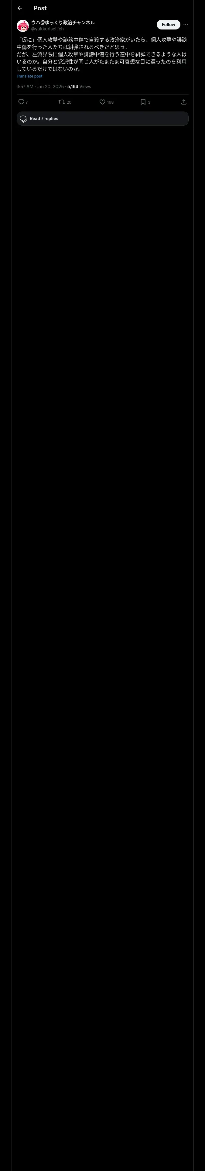 取得元URL: https://x.com:443/yukkuriseijich/status/1881053338575487143