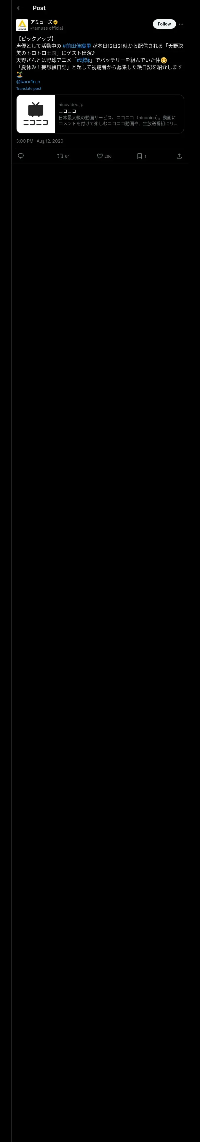 取得元URL: https://x.com:443/amuse_official/status/1293426995167035392