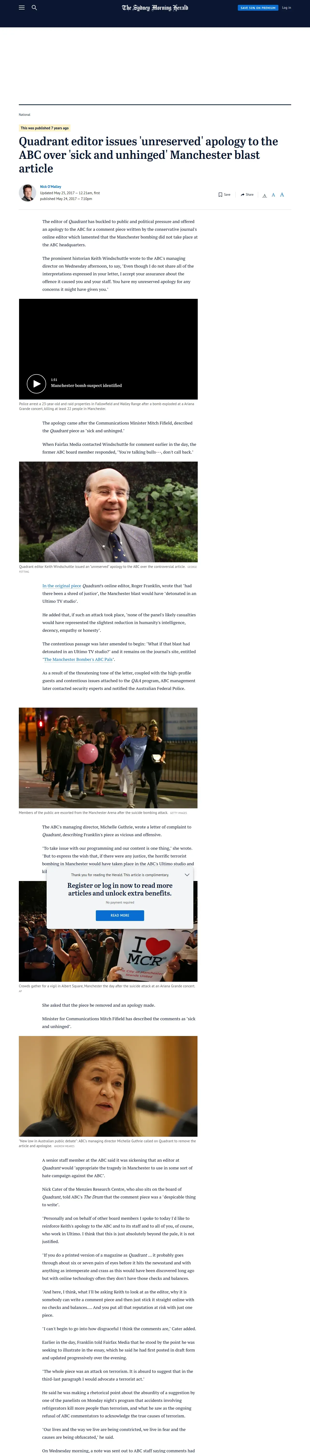 取得元URL: https://www.smh.com.au:443/national/quadrant-editor-issues-unreserved-apology-to-the-abc-over-sick-and-unhinged-article-20170524-gwch1q.html