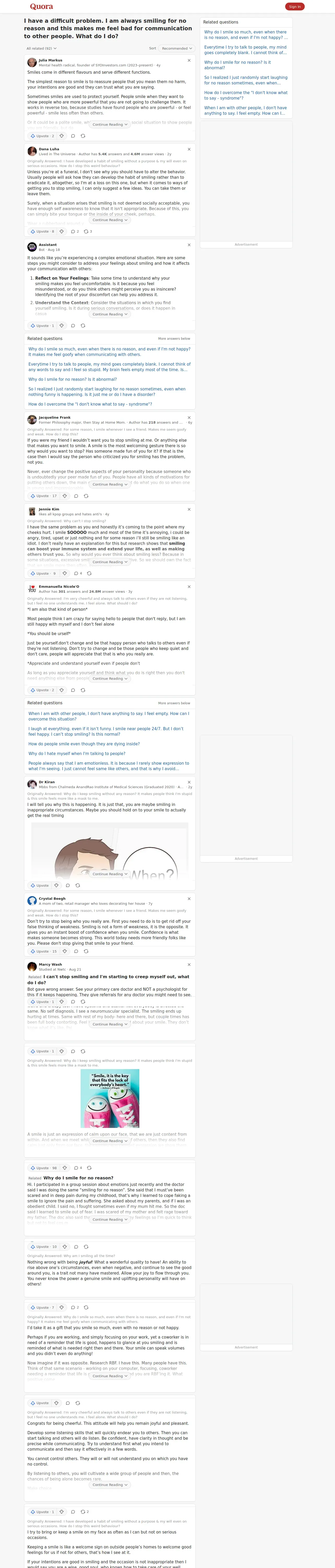 https://www.quora.com:443/I-have-a-difficult-problem-I-am-always-smiling-for-no-reason-and-this-makes-me-feel-bad-for-communication-to-other-people-What-do-I-do