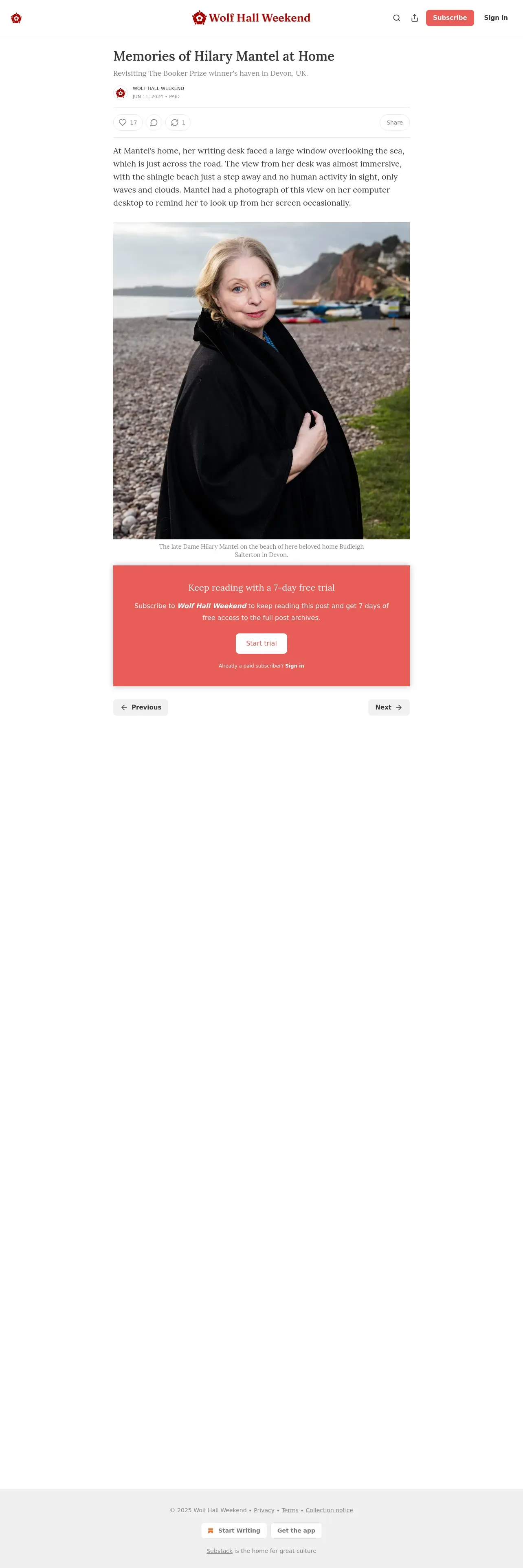 取得元URL: https://wolfhallweekend.substack.com:443/p/memories-of-the-home-hilary-mantel