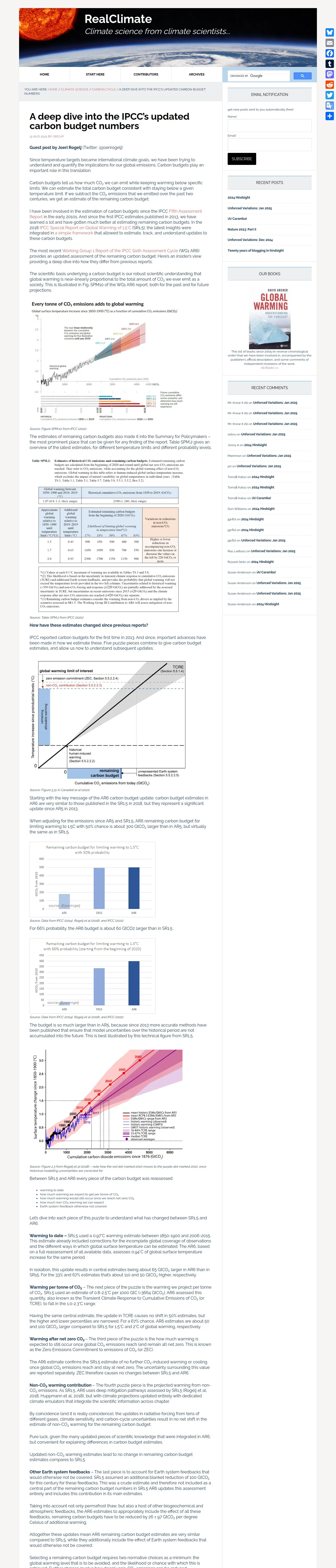 https://www.realclimate.org:443/index.php/archives/2021/08/a-deep-dive-into-the-ipccs-updated-carbon-budget-numbers/