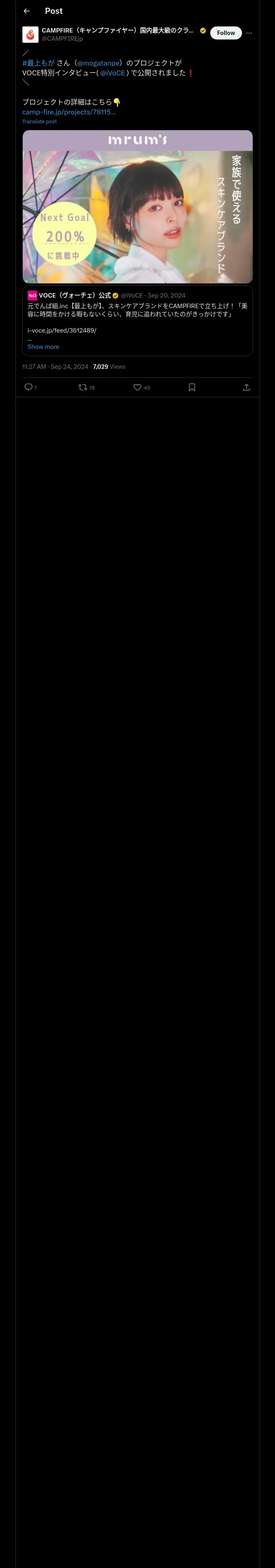 https://x.com:443/CAMPFIREjp/status/1838404815132709205