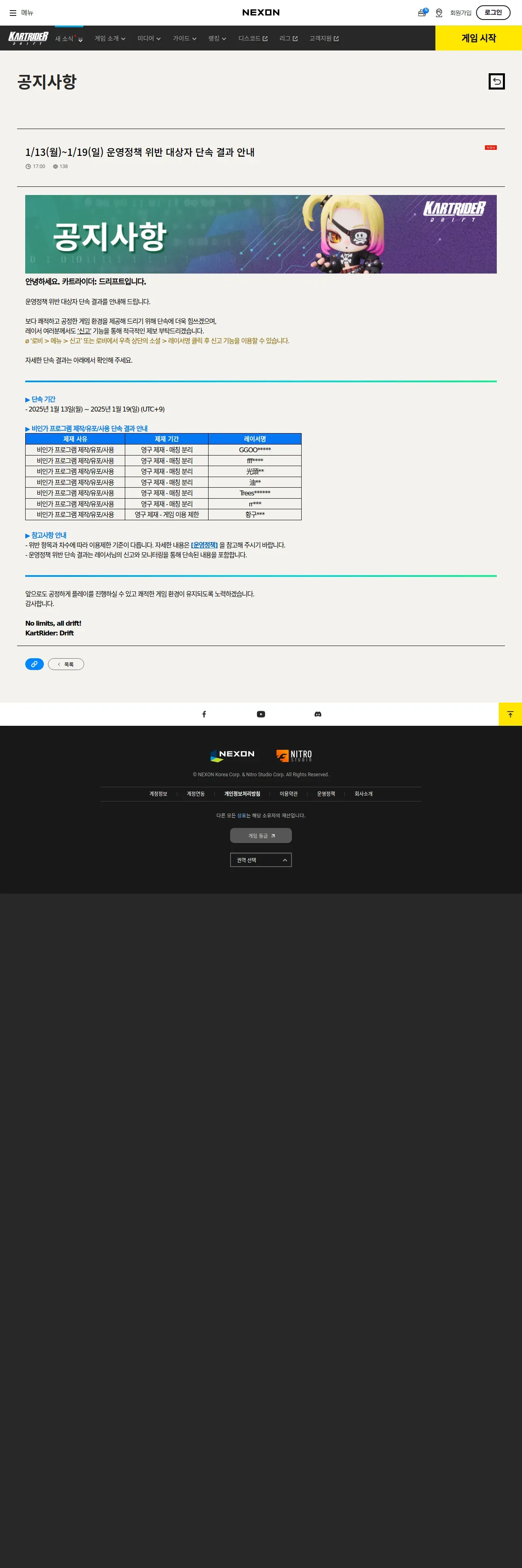 https://kartdrift.nexon.com:443/kartdrift/ko/news/announcement/view?threadId=2719420