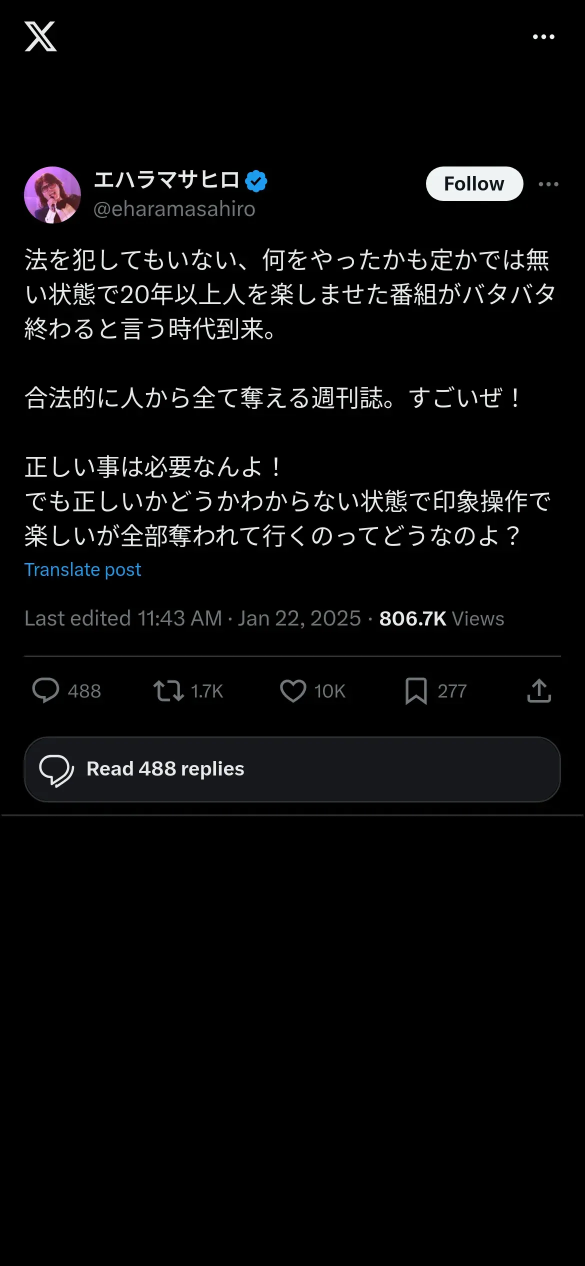 取得元URL: https://x.com:443/eharamasahiro/status/1881895458555174995
