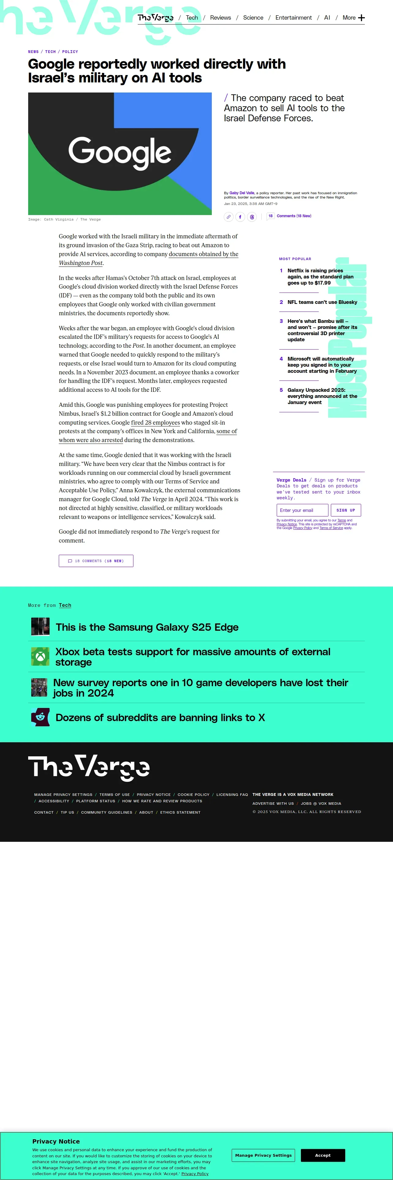 https://www.theverge.com:443/2025/1/22/24349582/google-israel-defense-forces-idf-contract-gaza