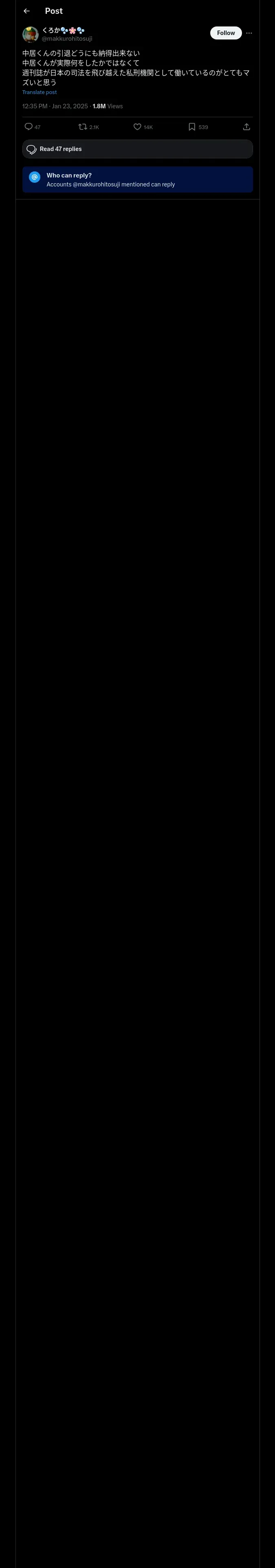 取得元URL: https://x.com:443/makkurohitosuji/status/1882270923195294127