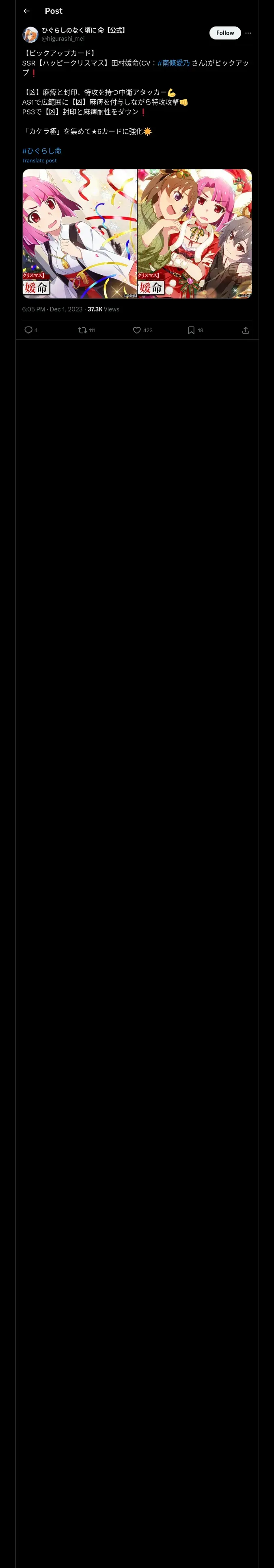 https://x.com:443/higurashi_mei/status/1730513315430891999