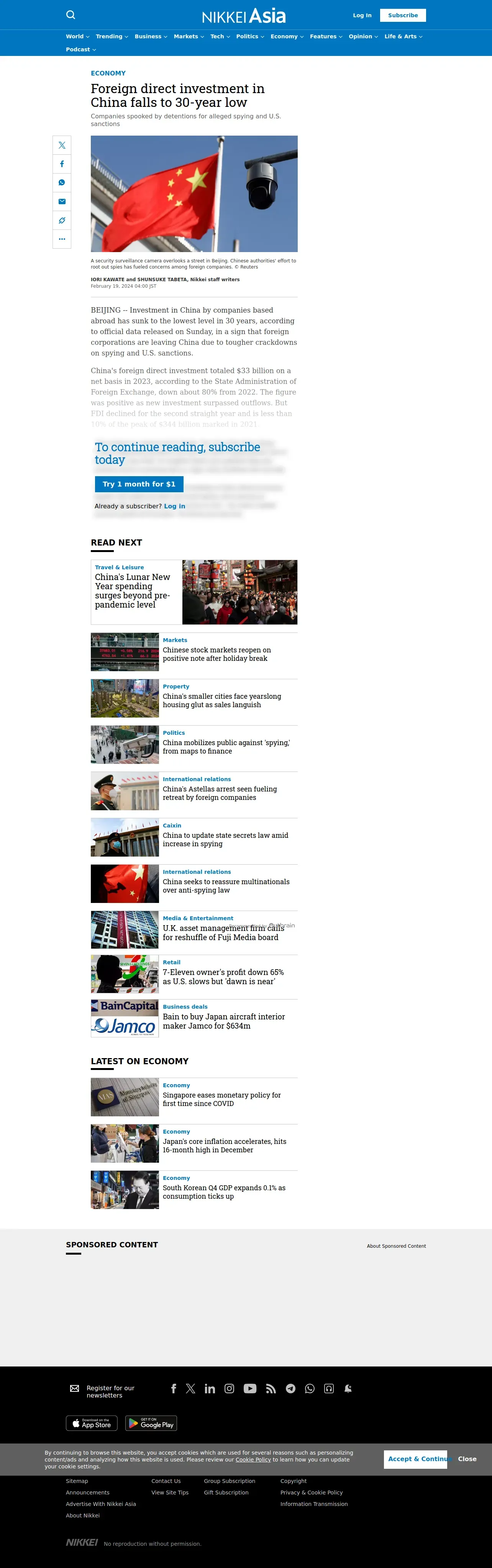 https://asia.nikkei.com:443/Economy/Foreign-direct-investment-in-China-falls-to-30-year-low