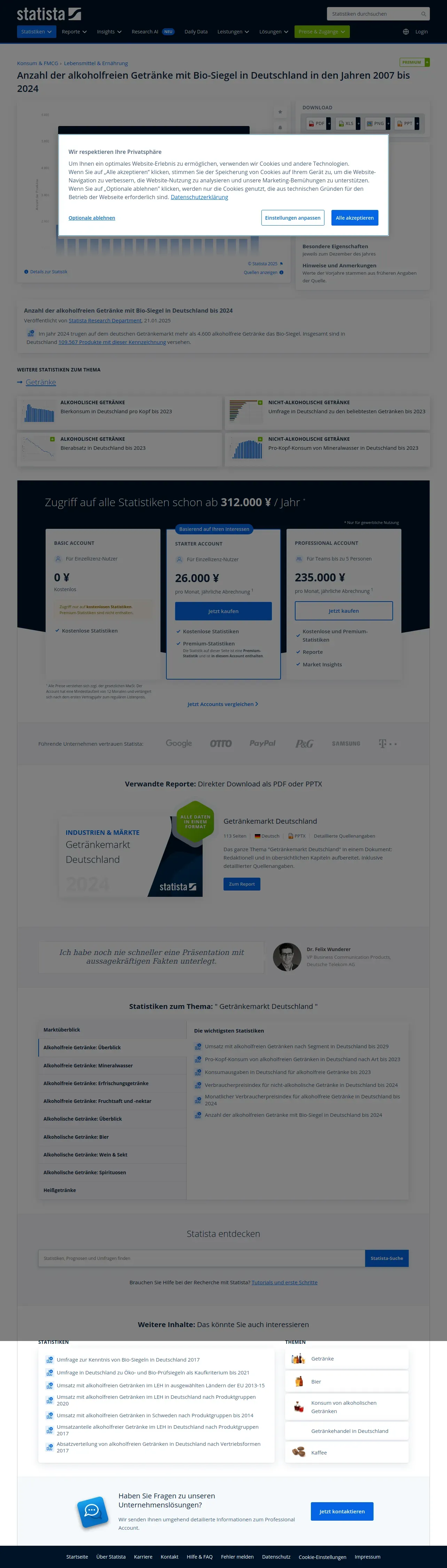 https://de.statista.com:443/statistik/daten/studie/999209/umfrage/alkoholfreie-getraenke-mit-bio-siegel-in-deutschland/