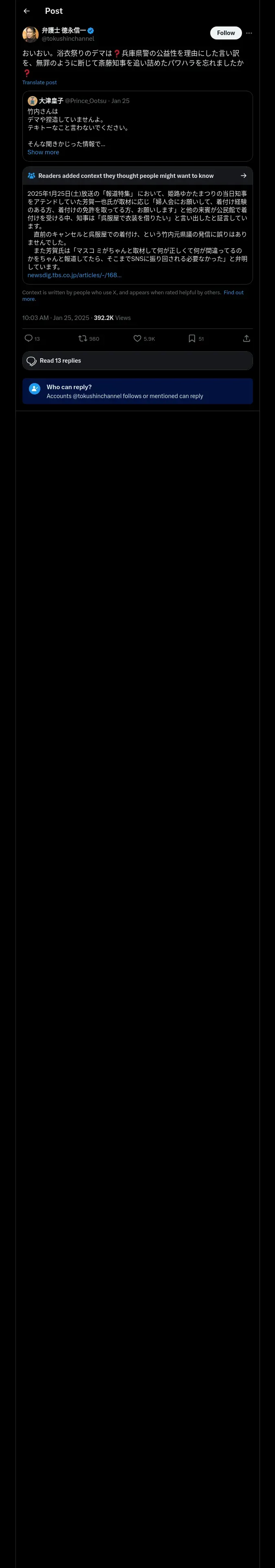 https://x.com:443/tokushinchannel/status/1882957410391949763