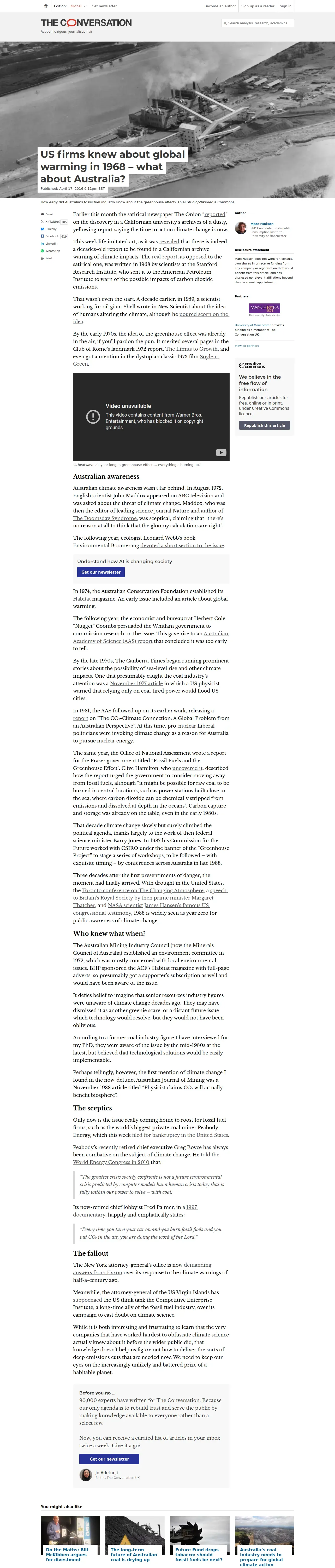 https://theconversation.com:443/us-firms-knew-about-global-warming-in-1968-what-about-australia-57878