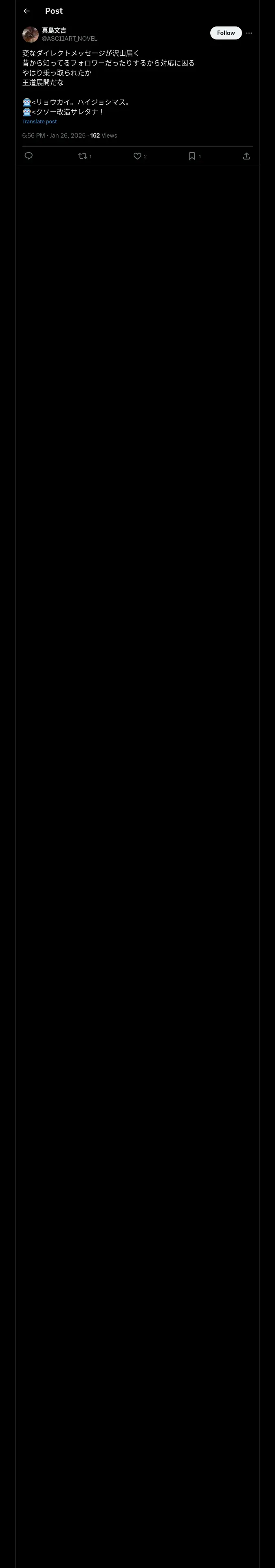 取得元URL: https://x.com:443/ASCIIART_NOVEL/status/1883453827984310363